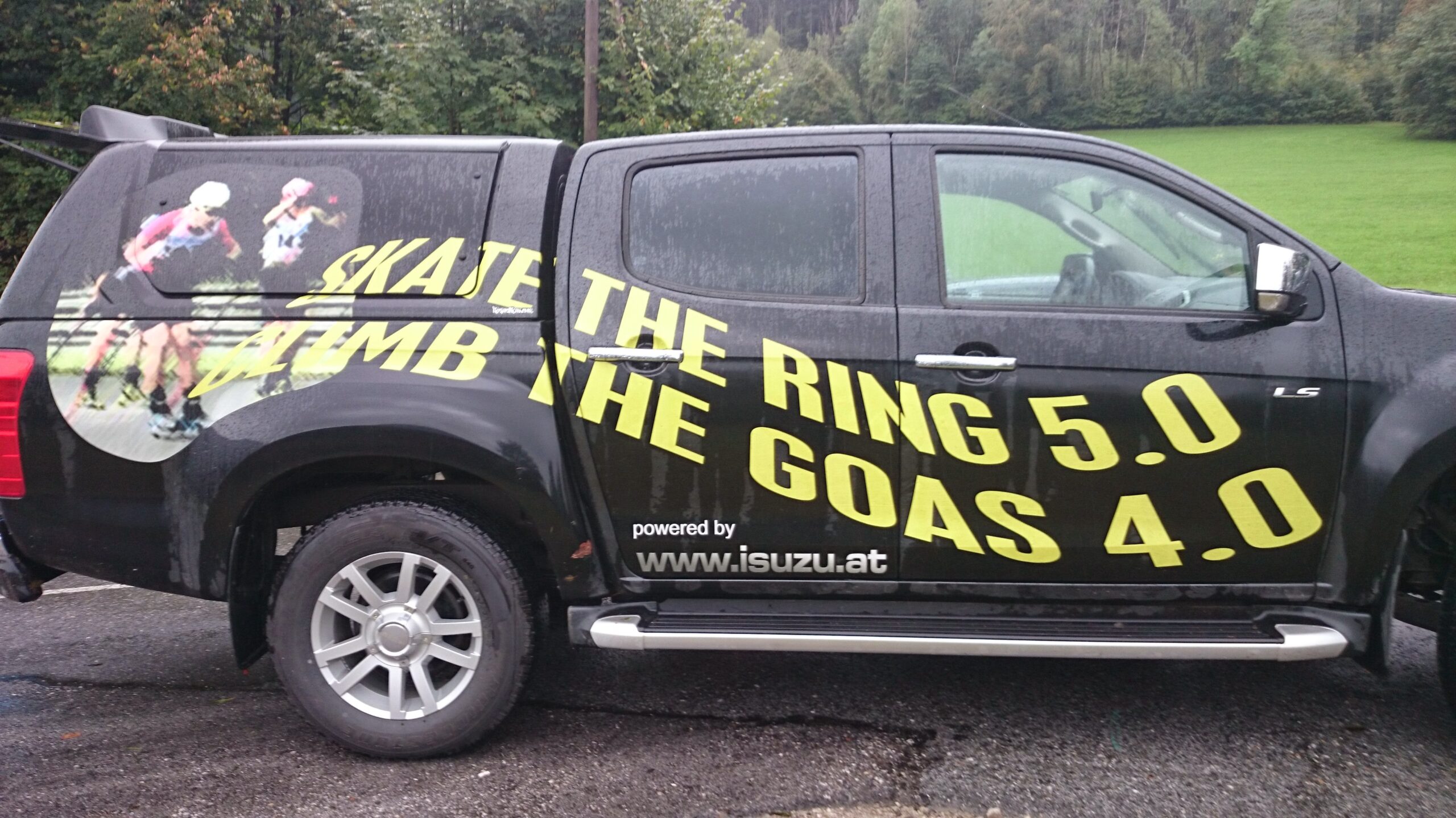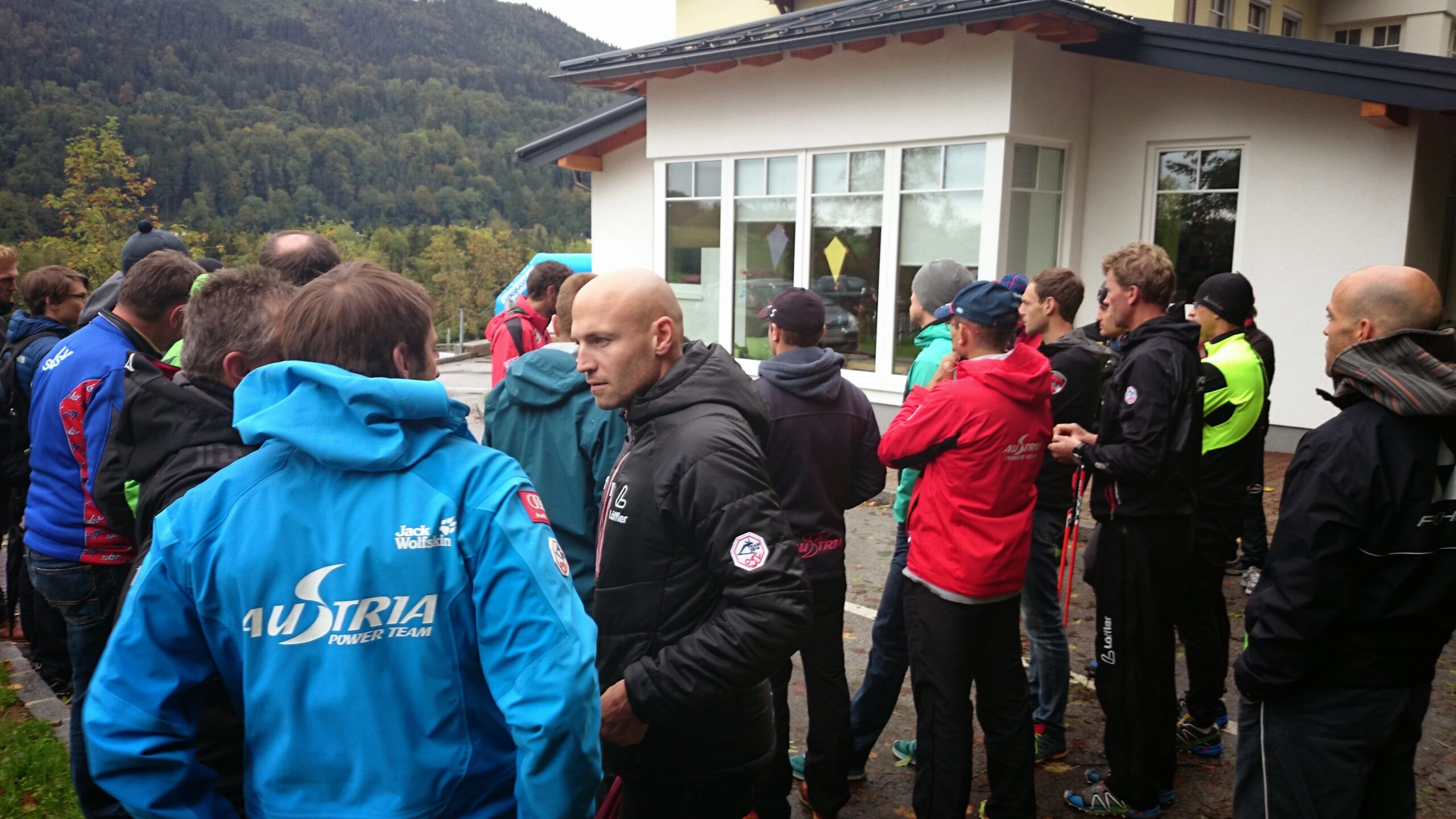 Am Morgen des Renntages hatte ich ein richtiges ungutes Gefühl. Vor einer Woche bin ich einen Test bis zur Zistel Alm gelaufen. In der Skating Technik. Ich war mit den 32 Minuten nicht zufrieden. Es war sehr heiß an diesem Nachmittag. Und in Panik lieh ich mir einen Profi Classic Roller aus. Der wiederum war wirklich schnell aber sehr schwer gerade zu halten. Ich bin damit vorher nur einmal damit gelaufen. Es war also ein Harakiri Unternehmen an diesem verregneten September Sonntag. Ich war schon um 08:30 beim Start und holte mir die Startnummer. Ich war dann doch wieder gut drauf und freute mich auf das Rennen. Die Beine waren auch locker. Gegen 09:00 kamen die ersten Radfahrer und mit Ihnen auch der Regen. Vor den Skirollern war noch das Gaisberg Radrennen der Amateure und der Damen Elite. Und dann kamen SIE. Die unantastbaren, die Guten, die Heroes! In einer Schlange kam ein ÖSV Bus nach dem nächsten. Hinter den beschlagenen Fenstern konnte man SIE erkennen. Die Stars der Langläufer. Großteils Nachwuchs Athleten. Sehr groß ist der Nationalkader und A-Kader zurzeit ja nicht. Gehüllt in Trainingsklamotten, Kapuze übern Kopf und Kopfhörer im Ohr schwebten sie in das Startgelände. Um 09:45 war die Mannschaftsführer Besprechung. Da gehe ich auch hin dachte ich mir! Ich war ja Aktiver, Trainer und Funktionär in Person J Ich hatte keine Einwände und nickte in der letzten Reihe immer ein freundliches Ja. Neben mir stand der „LOIS“. Der Lois von 1999. Der Stadlober Lois. Ich war mittendrin statt nur dabei!