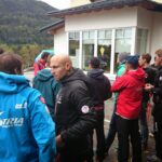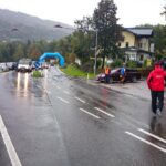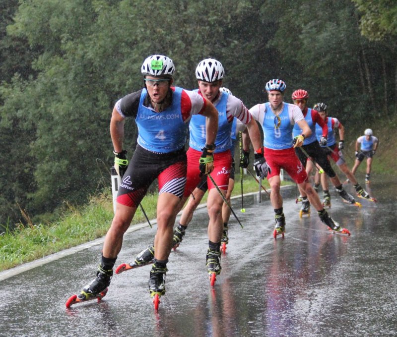 Am Morgen des Renntages hatte ich ein richtig ungutes Gefühl. Vor einer Woche bin ich einen Test bis zur Zistel Alm gelaufen. In der Skating Technik. Ich war mit den 32 Minuten nicht zufrieden. Es war sehr heiß an diesem Nachmittag, und in Panik lieh ich mir einen Profi Classic Roller aus. Skiskett Biturbo sollte es sein. Leider ein altes Model. Er war schnell aber sehr schwer gerade zu halten. Ich bin damit vorher nur einmal damit gelaufen. Es war also ein Harakiri Unternehmen an diesem verregneten September Sonntag. Ich war schon um 08:30 beim Start und holte mir die Startnummer. Dann war ich doch wieder gut drauf und freute mich auf das Rennen. Die Beine waren auch verdächtig locker. Gegen 09:00 kamen die ersten Radfahrer und mit Ihnen auch der Regen. Vor den Skirollern war noch das Gaisberg Radrennen der Amateure und der Damen Elite. Und dann kamen SIE. Die unantastbaren, die Guten, die Heroes! In einer Schlange kam ein ÖSV Bus nach dem nächsten. Hinter den beschlagenen Fenstern konnte man SIE erkennen. Die Stars der Langläufer. Vom Weltcup Team waren Bernhard Tritscher und Teresa Stadlober am Start. Sehr groß ist der Nationalkader zurzeit ja nicht. B und C Kader waren aber allesamt hier. Brav! Gehüllt in Trainingsklamotten, Kapuze übern Kopf und Kopfhörer im Ohr schwebten sie in das Startgelände. Um 09:45 war die Mannschaftsführer Besprechung. Da gehe ich auch hin dachte ich mir! Ich war ja Aktiver, Trainer und Funktionär in Person 🙂 Ich hatte keine Einwände und nickte in der letzten Reihe immer ein freundliches Ja. Neben mir stand der „LOIS“. Der Lois von 1999. Der Stadlober Lois. Ich war mittendrin statt nur dabei!