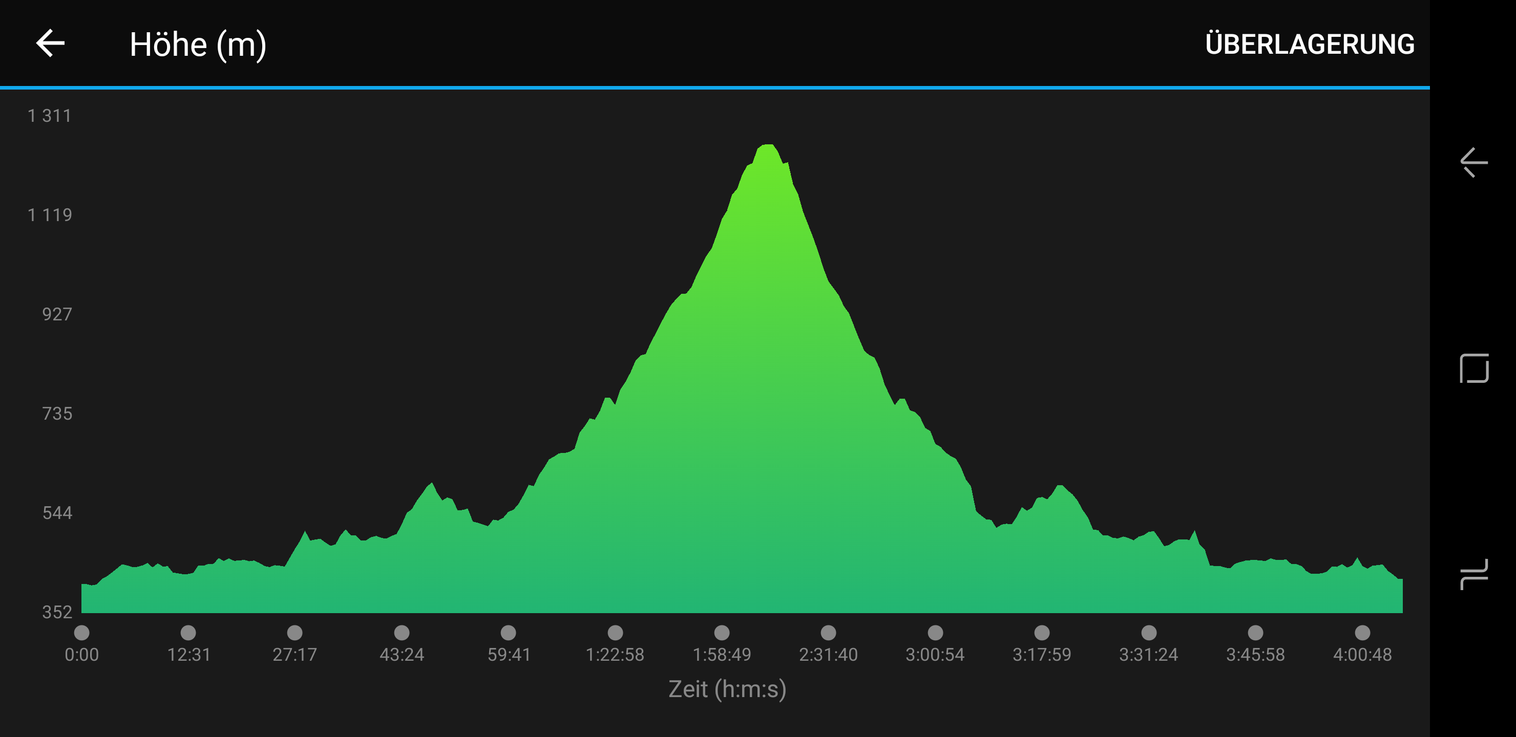 Die Ziel vor Augen, die letzten 200 Meter vor mir, die Terasse bei der Stoisser Alm Hütte war voll mit den vor mir gelandeten Läufern. Also fast alle. Der Sprecher schrie noch voller Motivation ins Mikro: „ Lauf Bua Lauf, nimma weit“ . Ich tat was er befahl. Das Publikum dankte es mir mit frenetischen Beifall. Ich lief cool durch den Zielbogen. „Super gemacht!“ sagten einige. Die haben aber auch keine Ahnung. Ich trank 3 Becher Iso, umrundete die Hütte und lief langsam wieder ins Tal. Zu gewinnen gab es heute eh nix. Unten Angekommen war ich froh nicht mehr laufen zu müssen. Ich schwang mich auf mein altes Peugeut Rad, das mit den aktuell 6 Gängen und zog von dannen. Die Heimfahrt war gefühlt unendlich. Ohne Getränke und Nahrung ging kam ich ziemlich geschlaucht nach insgesamt 04:03 Stunden und 64 km zufrieden und glücklich zu Hause an.