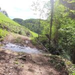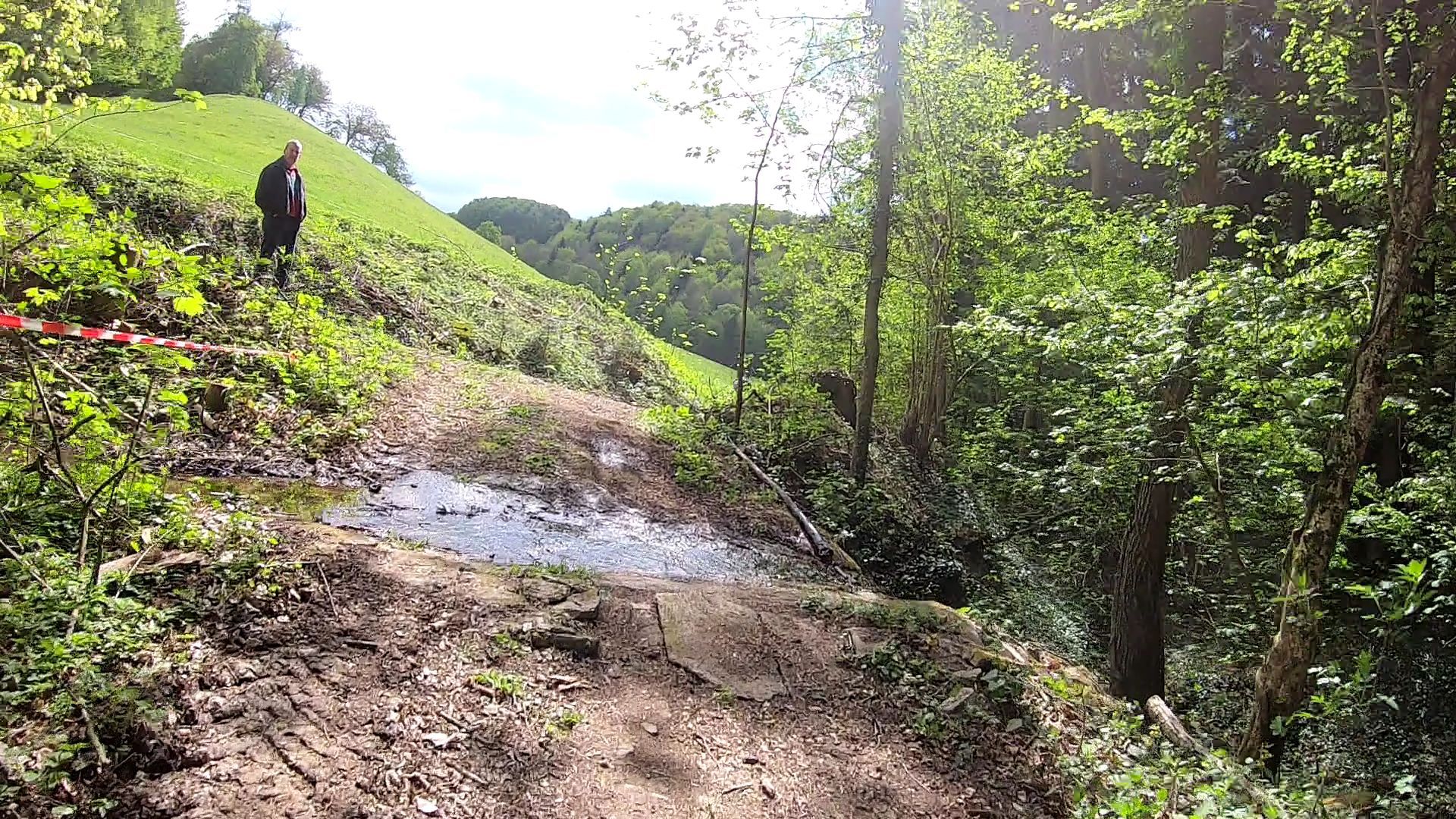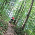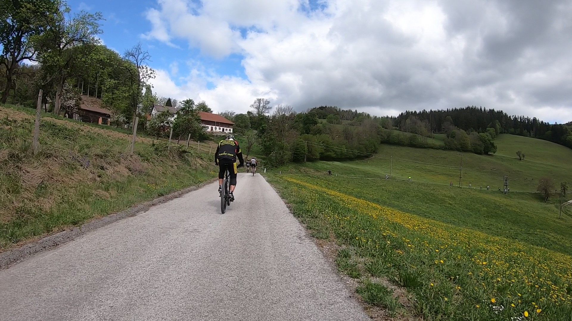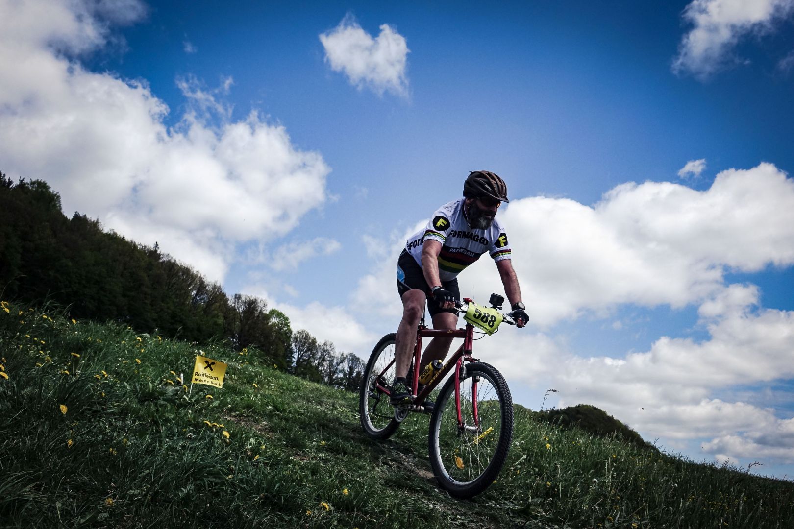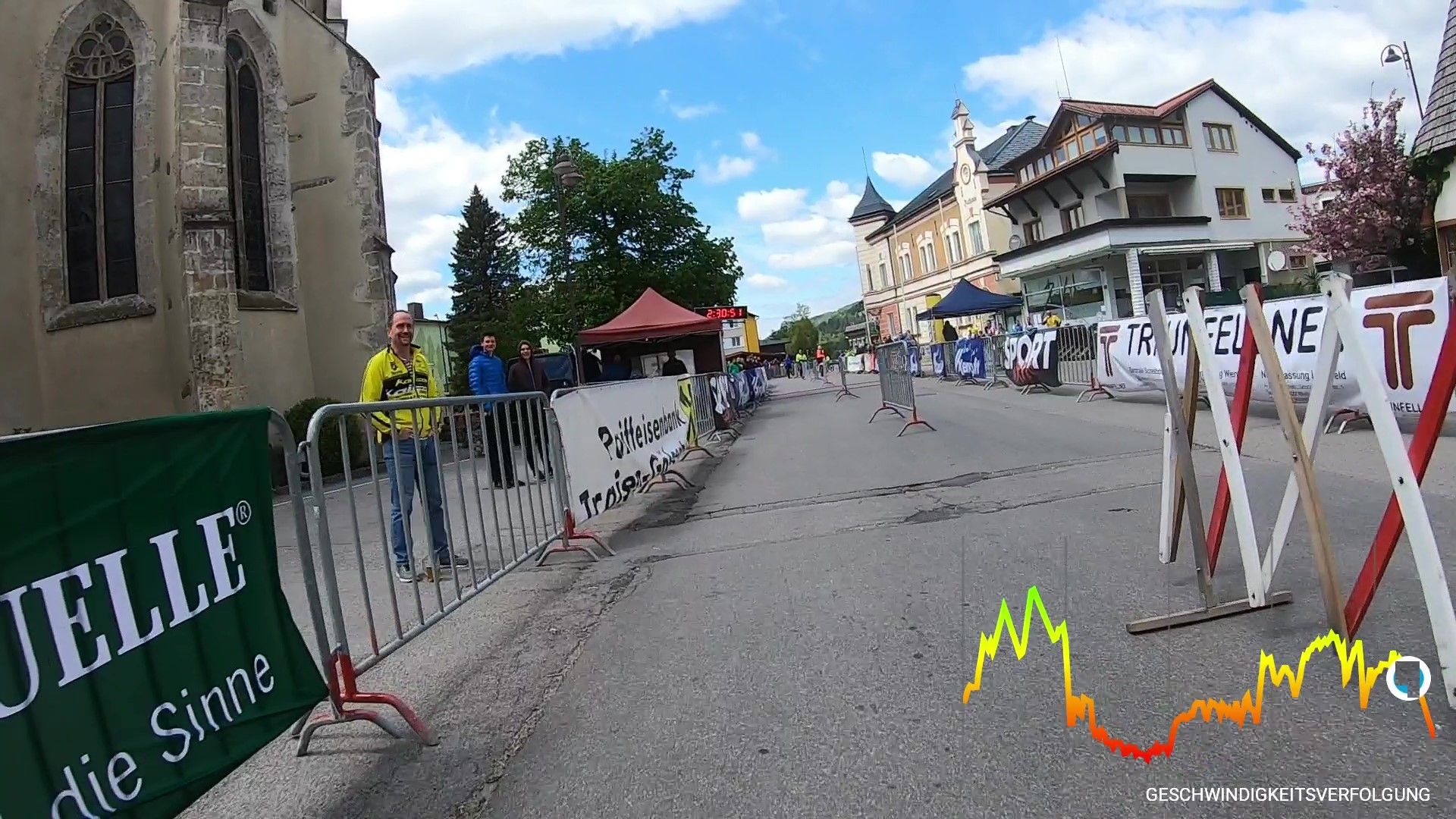 Bergauf ging es wieder besser. Ich konnte viele wieder einholen. Dann ging es wieder eine Wiese runter. So steil das ich dachte, ich bin auf einer Skipiste. Wo ich bremse lassen es die anderen laufen. Ich versinke im Erdboden. Trage es aber mit Fassung. Die schöne Strecke mit wunderbaren Aussichten auf das Hügelland und Traisental interessiert mich mittlerweile nicht mehr. Nur aus den Augenwinkel nehme ich die Zuschauer und die schöne Landschaft wahr. Nach dem höchsten Punkt geht es in eine Wald Passage. Für mich völlig unnötig. Gibt’s den keine Umfahrung ? Ich stolpere im Schritt Tempo über die Wurzeln, das war nicht Lustig. Die Streckenführung meint es nicht gut mit mir. Jetzt auch noch bergab auf Schotter Strassen!? Für viele eine mords gaudi, für mich völlig Sinnfrei. Warum ist hier sowenig Asphaltiert?Niederösterreich ist ein reiches Land 🙂 Scherz beiseite. Ich fürchte mich, ich mag das nicht, es ist rutschig. Nein.