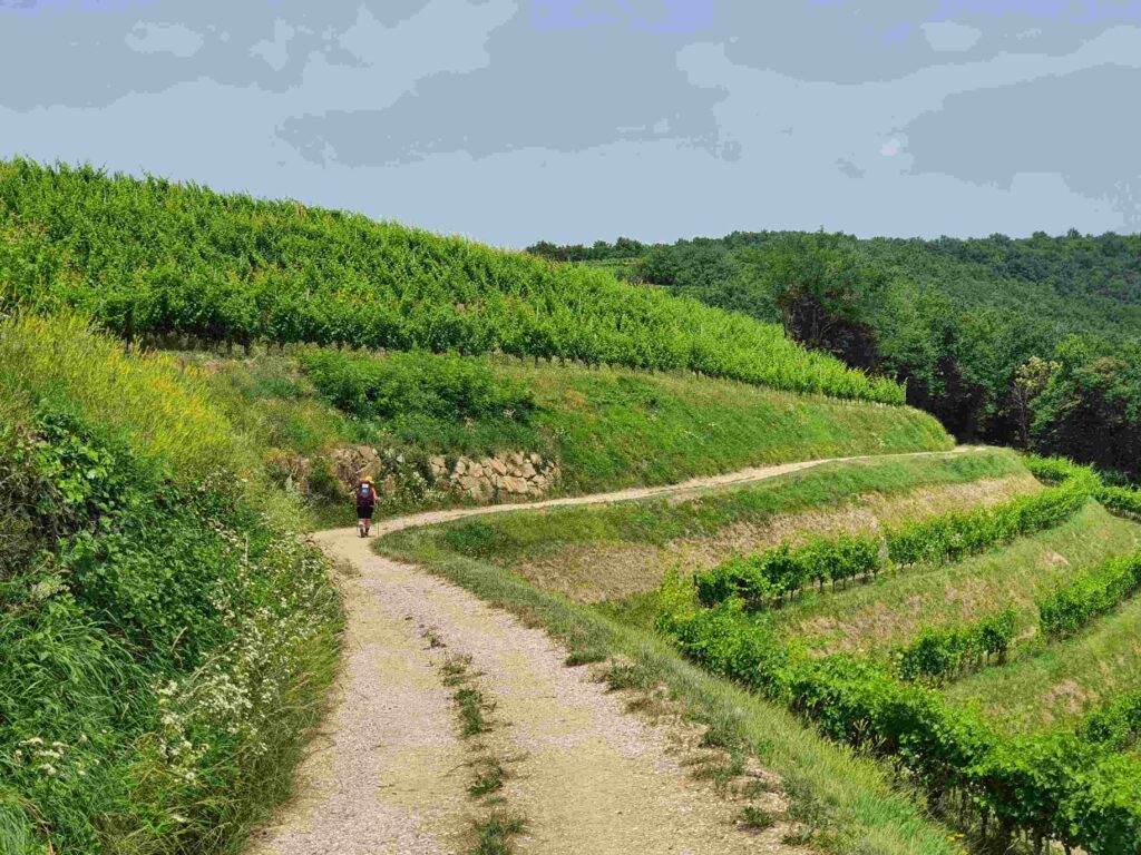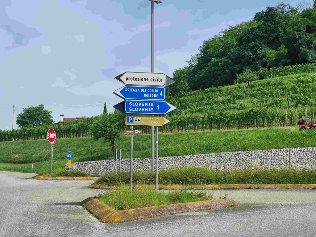 Heute steht die Längste Etappe bis jetzt steht auf dem Programm, erstmals über 20km, mit einigen Höhenmetern auch noch dazu. Wir starten bei relativ kühlen Temperaturen angesichts der Länge gegen 8 Uhr. Es geht gleich steil bergauf auf Asphalt, dann plötzlich bergab in einen Graben, dort stürze ich wieder mit meinem Rucksack. Nix passiert Gottseidank! Nach dem ersten Hügel gehts lange auf der Strasse entlang bis man direkt an der Slowenischen Grenze ist. Wir sind im Herzen des Weinbaugebiets Collio. Einem bekannten Wein der ähnlich dem Sauvignion Blanc ist. Die Landschaft ist hier auch so wie in der Südsteiermark oder der Toscana. Man fühlt sich zu Hause. Die Gegend ist traumhaft, wir wandern durch Weingärten sind begeistert. Zu Mittag sind haben wir einen längeren Anstieg hinter uns und machen eine Rast unter einem großen Baum. Mittlerweile ist es heiß geworden, wir haben keine Schatten mehr, unsere Trinkvorräte gehen zu Ende, weit und breit kein Brunnen oder Bach zu sehn. Nach der Pause gehts wieder bergab und unser Durst wird größer.