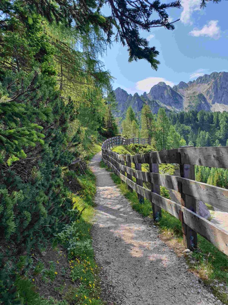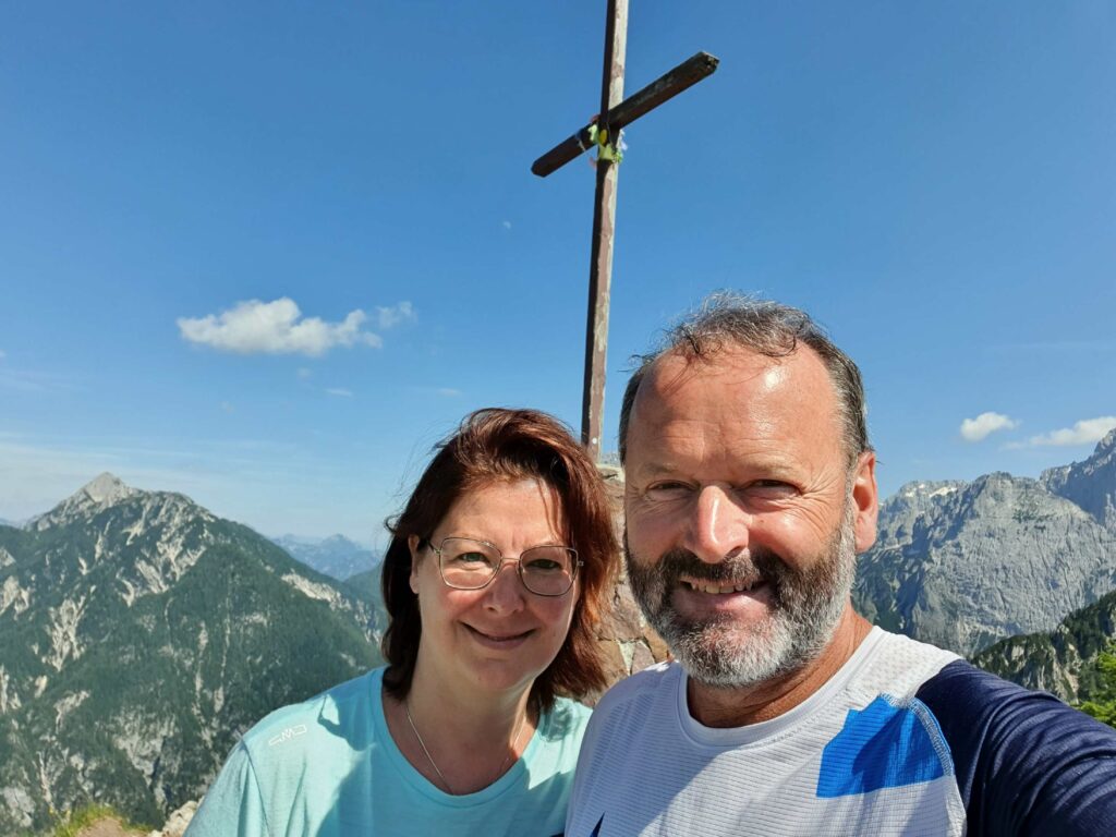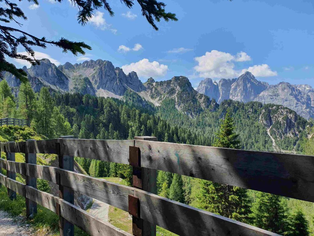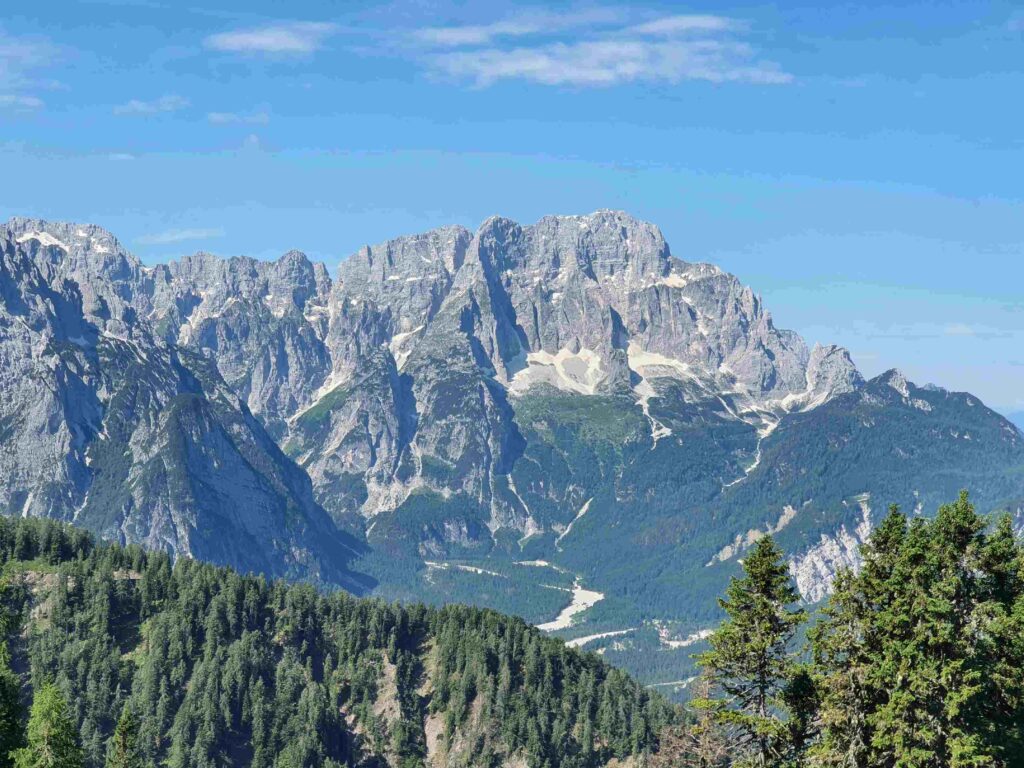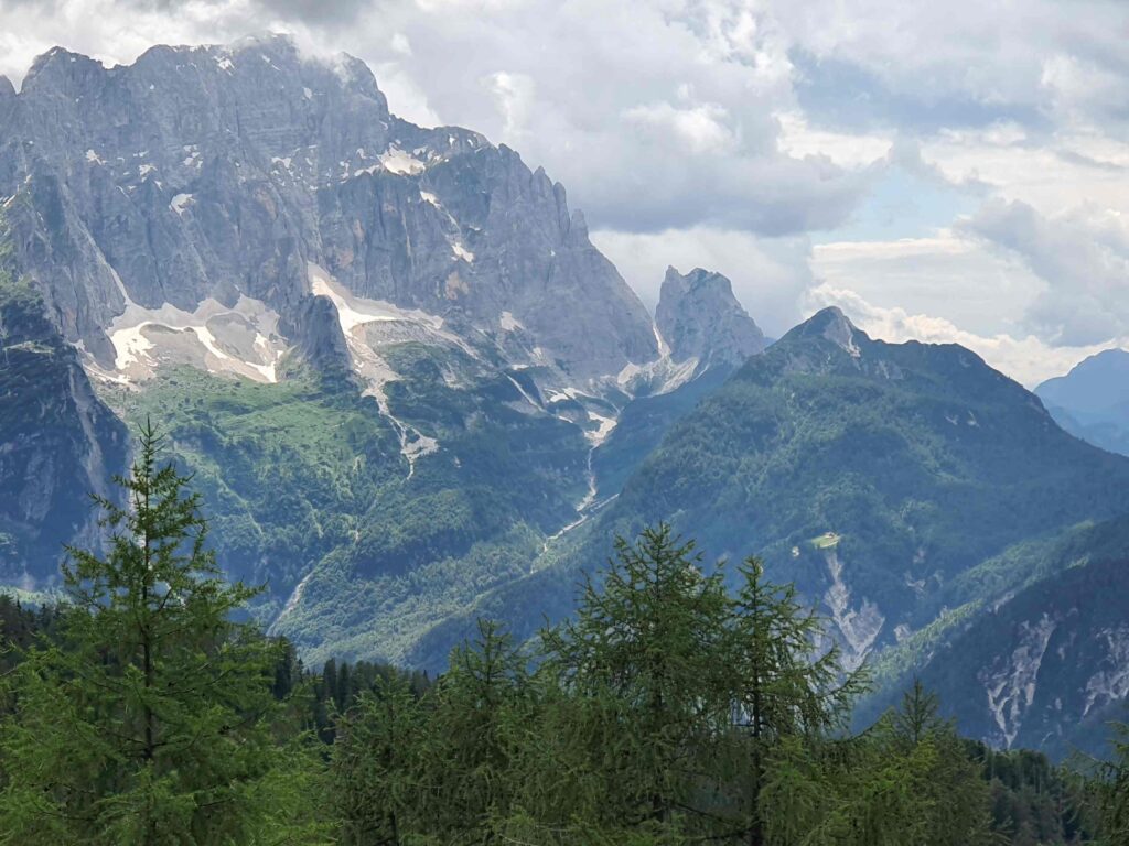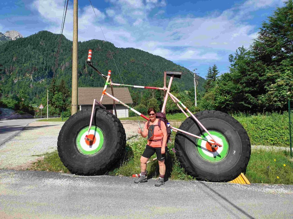 Mit einem lachenden und einem weinenden Auge beginnt der Tag. Die Sonne scheint, was willst du mehr. Wir gehen leicht ansteigend Richtung Tarvis auf dem Alpe Adria Radweg. Nach einer Stunde sind wir im nächsten Ort Camporosso, laut Pilger Plan soll es irgendwo einen Stempel geben, wir finden nichts und gehen zur Seilbahn des Monte Lussari. In der Talstation gibts auch keinen Stempel, aber Bier. Sabine musste ich lustiger Weise überreden zu einem 11er Bier. Wir liegen in einem Liegestuhl an der Schirmbar und blicken nach oben. Irgendwie ist alles komisch heute. Kein Wunder, wenn eine so lange Reise zu Ende geht. Wir schultern ein letztes Mal unseren Rucksack. Wir müssen nach oben. Der Weg ist sehr, sehr steil. Es ist zumindest ein Forstweg, so muss man nicht ganz so aufpassen. Nach 3 Stunden erreichen wir eine Alm. Sie liegt an einer Skiabfahrt im kleinen Skigebiet am Monte Lussari ist. Klein, aber sehr selektiv. Sogar Weltcup Rennen wurden schon mal ausgetragen. Wir wandern weiter sehr steil aufwärts und bewundern den Hüttenwirt, wie er mit einem Jeep die Pist rauf und runter zur Alm fährt. Nach kurzer Zeit treffen wir auf die asphaltierte Bergstraße. Diese wurde 2023 anlässlich einer Bergankunft des Giro Italia erstmals geteert. Das Rennen sah ich damals im Fernsehen. Ein großer Zweikampf damals zwischen dem Slowenen Primoz Roglic und dem Engländer Geraint Thomas. Roglic siegte unter tosenden Beifall tausender Fans aus seiner Heimat.